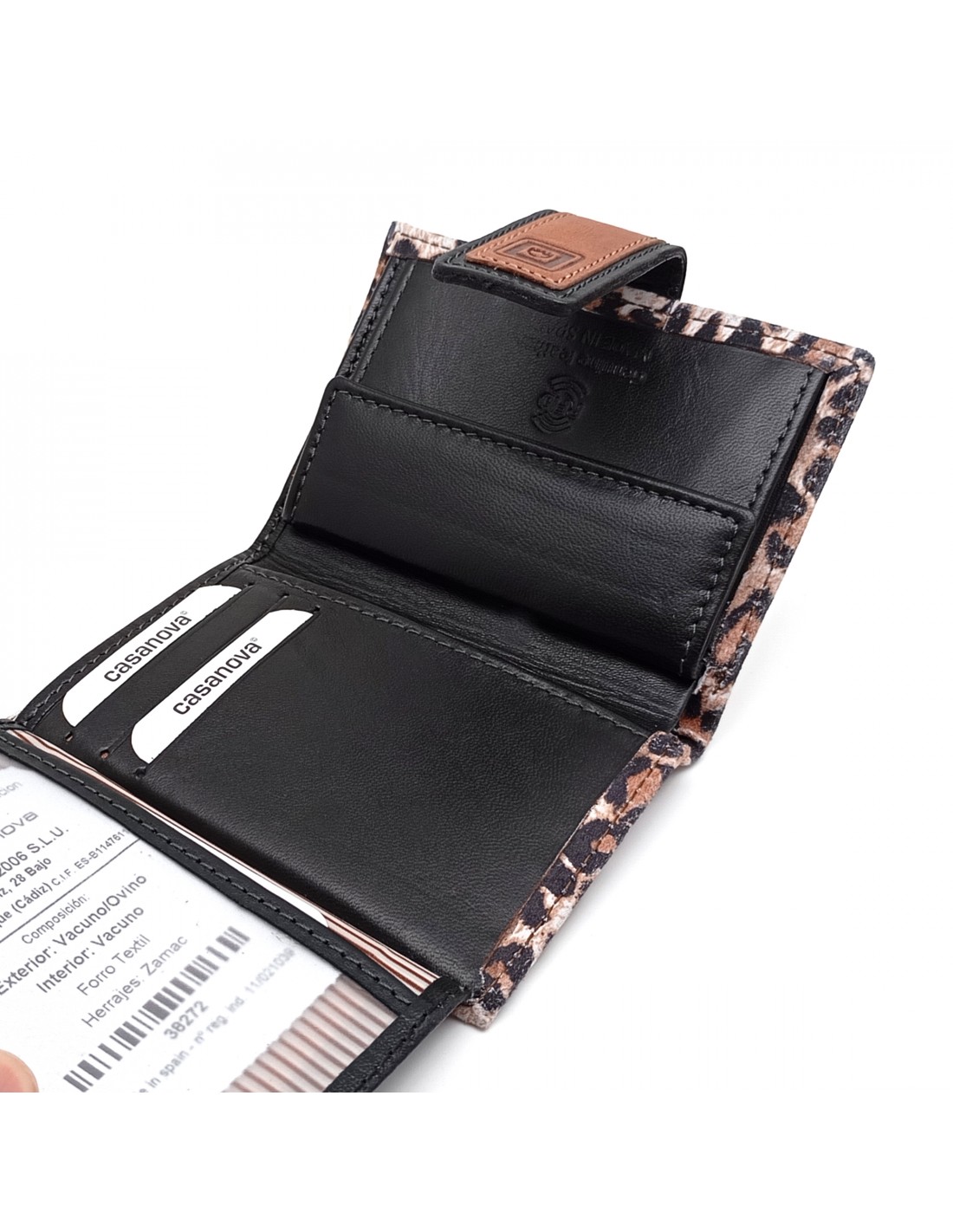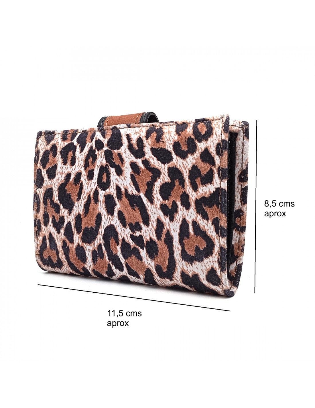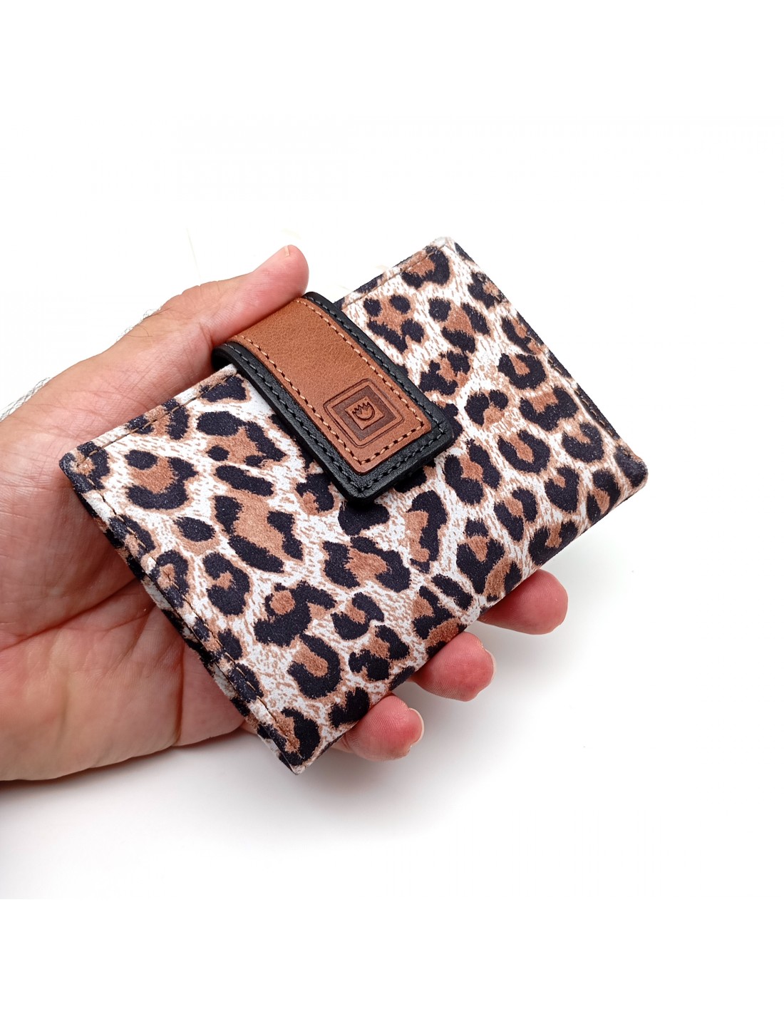 Cartera de piel para Mujer Pequeña con Monedero interior, LEOPARDO marron