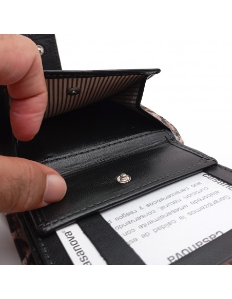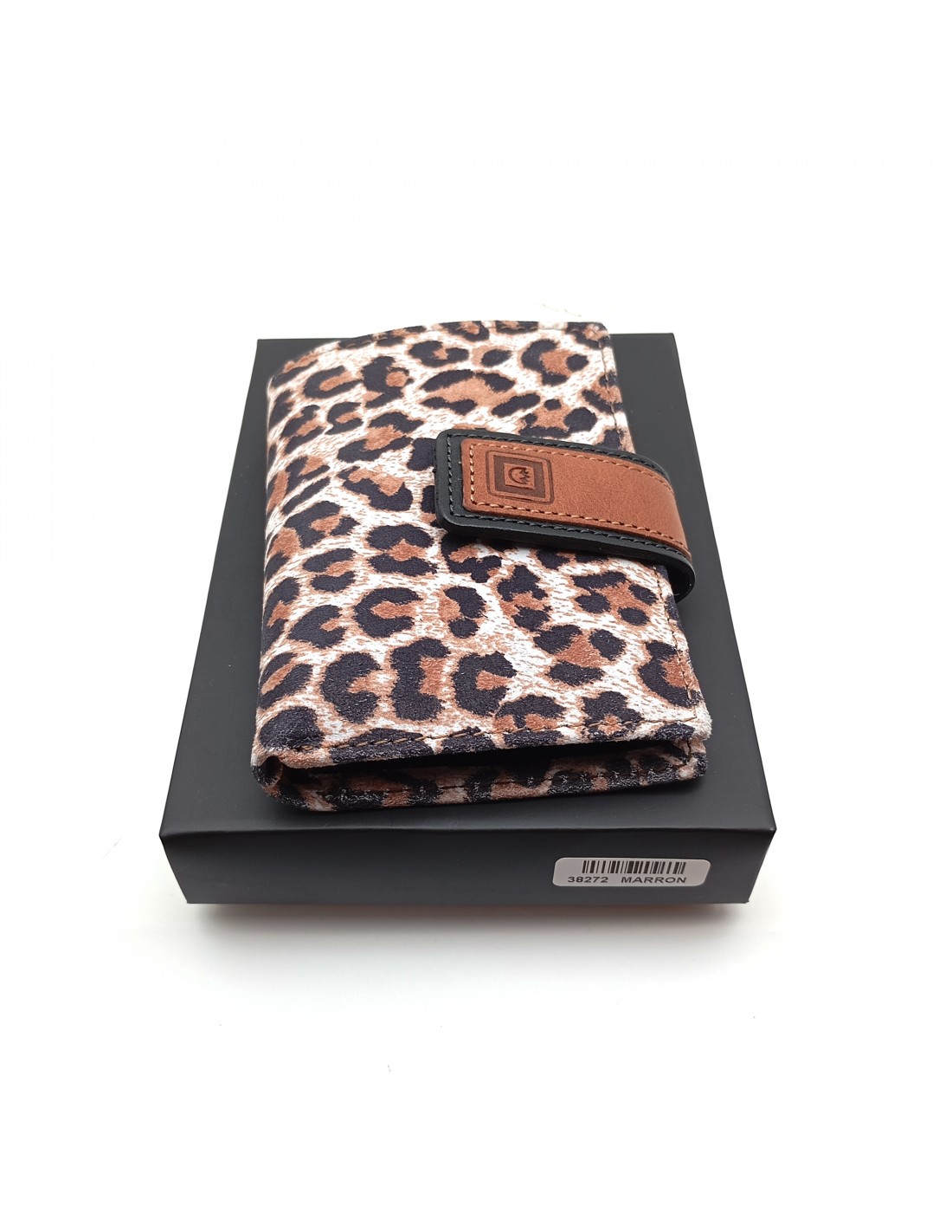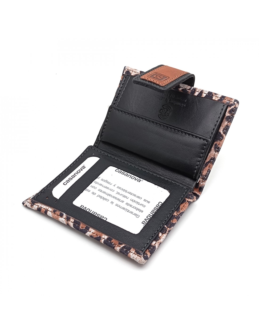 Cartera de piel para Mujer Pequeña con Monedero interior, LEOPARDO marron