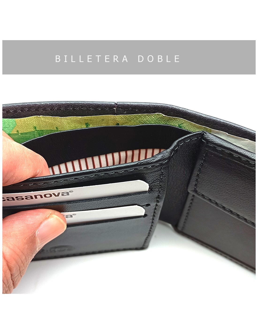 • Doble departamento para billetes.