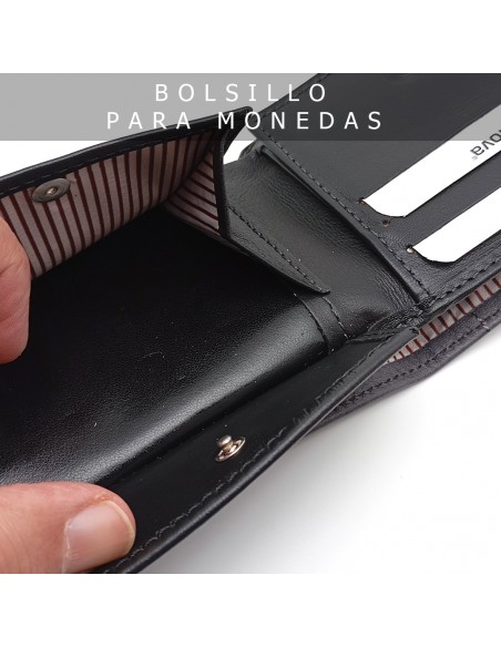 Cartera americana con Monedero de piel para hombre ROMA negro