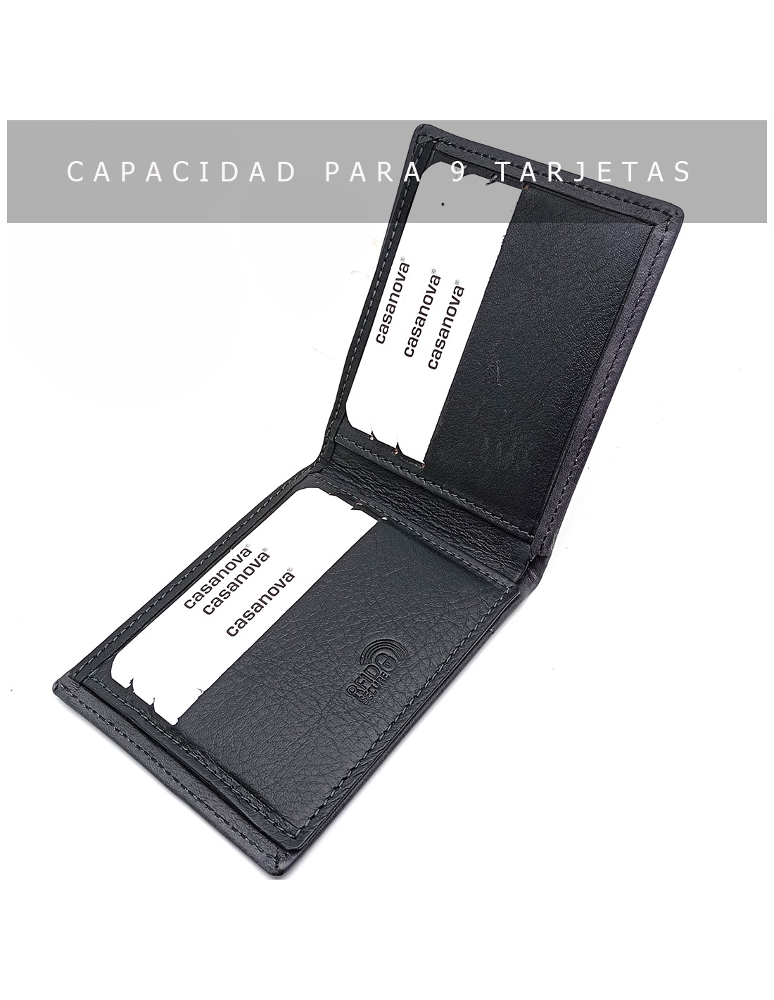 Con capacidad para 9 tarjetas y dimensiones compactas, podrás llevar todo lo que necesitas sin ocupar mucho espacio en tu bolsillo.