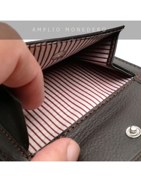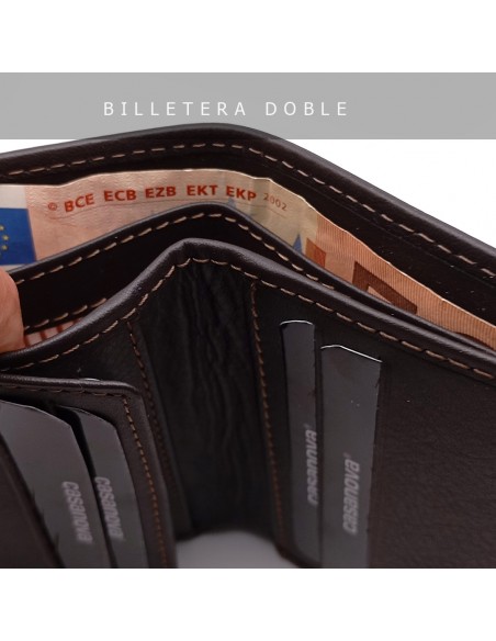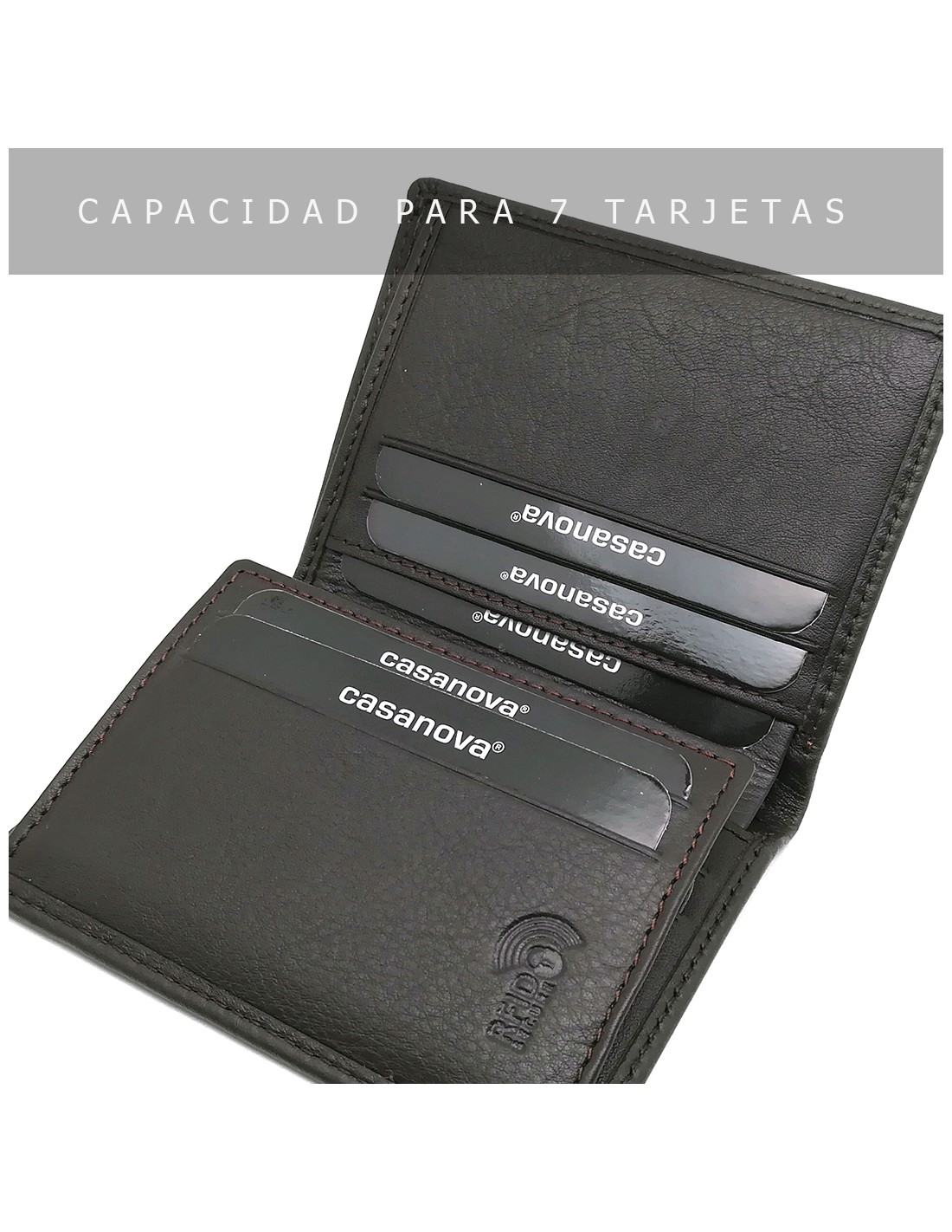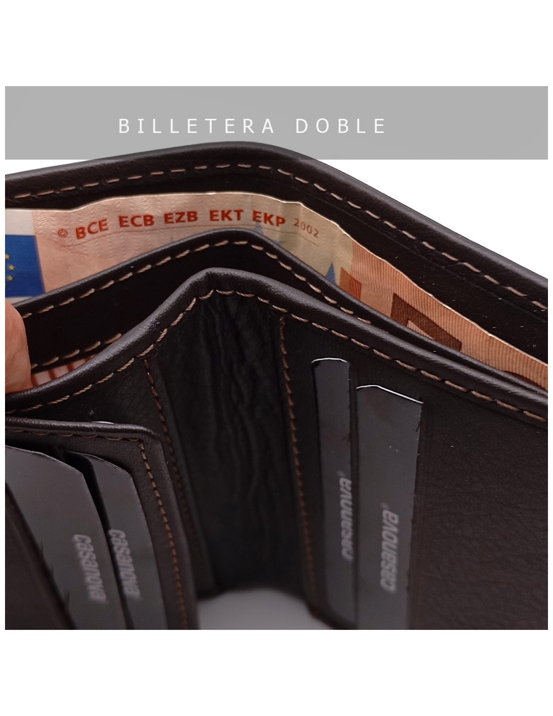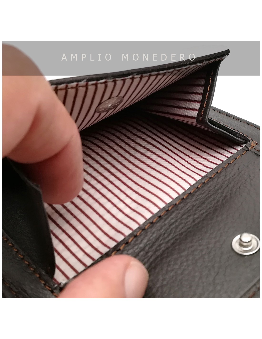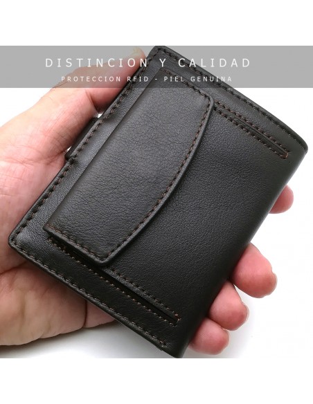 - Material de Alta Calidad: Confeccionada en piel genuina, esta cartera hombre con monedero exterior no solo tiene un aspecto lujoso, sino que está hecha para resistir el paso del tiempo.