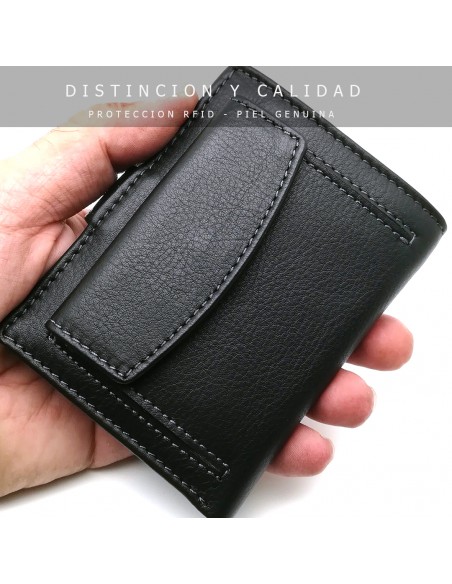 Su diseño delgado es ideal para llevar en cualquier bolsillo sin sacrificar espacio ni comodidad. Perfecta para el día a día o para eventos especiales, la cartera hombre con monedero exterior CLASSIC es tu compañero ideal, asegurando que siempre salgas con estilo y todo lo necesario a tu alcance.