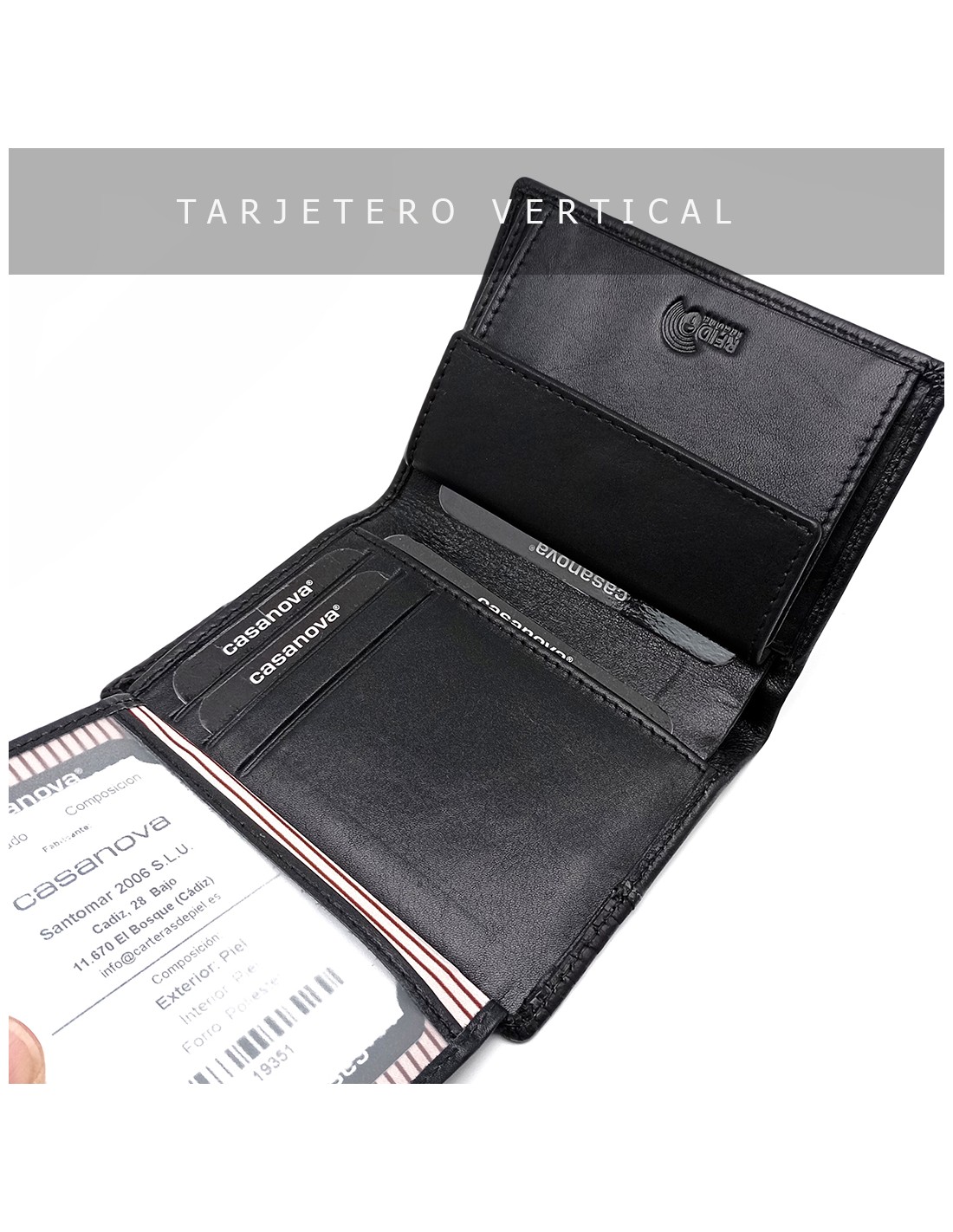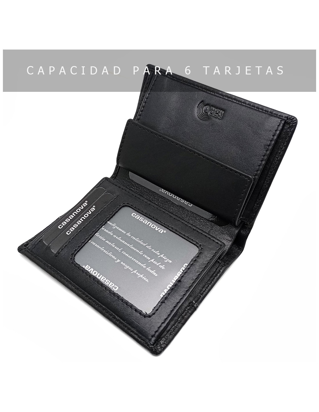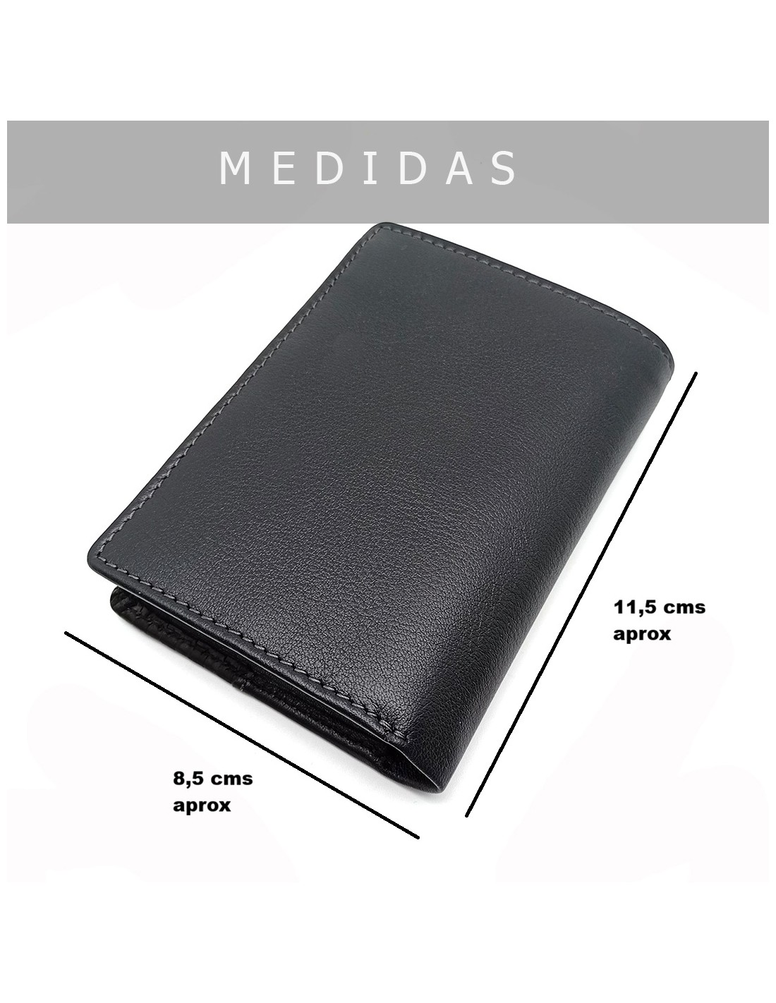 Amplio almacenamiento y organización: En su interior, la Cartera GRANADA ofrece múltiples ranuras para tarjetas, un compartimento transparente para documentos de identidad y dos espaciosos compartimentos para billetes. Todo pensado para que organices tus elementos esenciales con facilidad y eficacia.