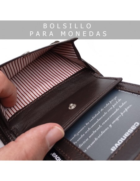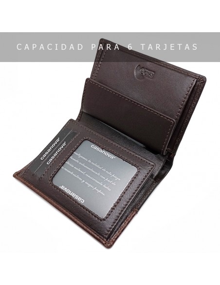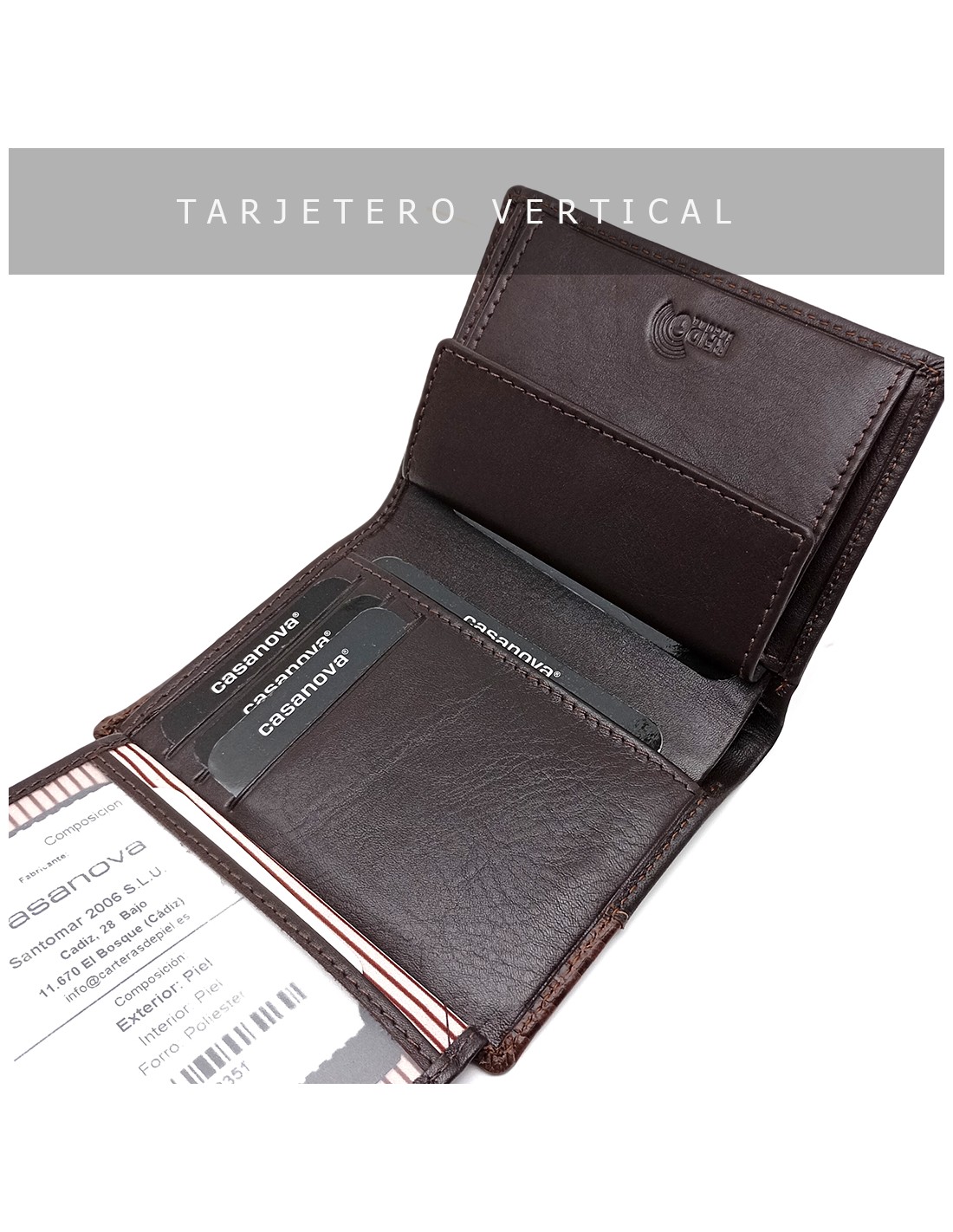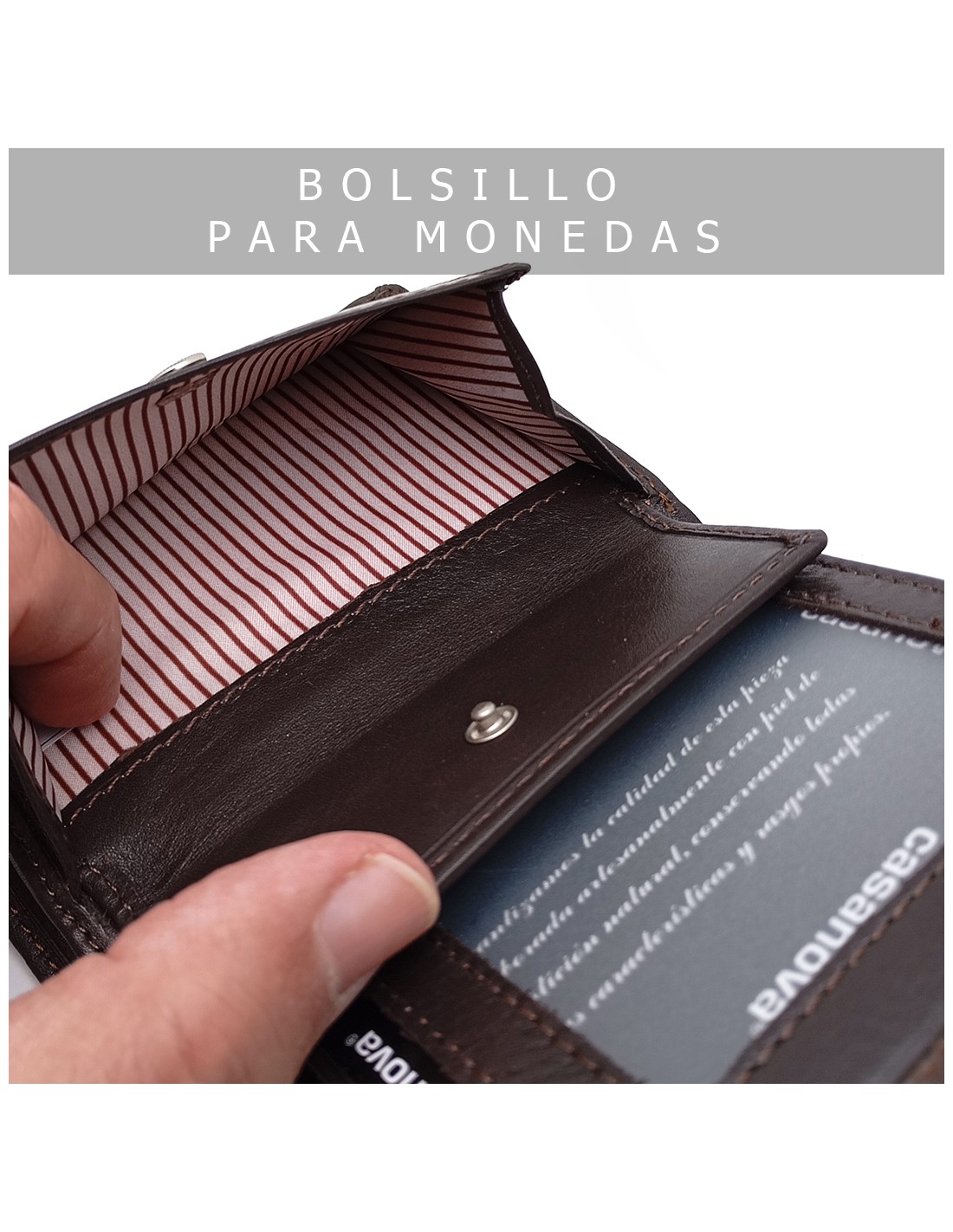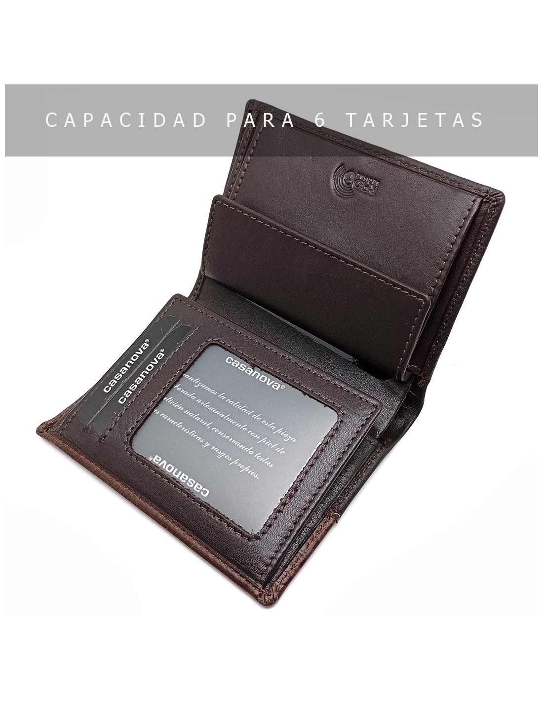 Amplio almacenamiento y organización: En su interior, la Cartera GRANADA ofrece múltiples ranuras para tarjetas, un compartimento transparente para documentos de identidad y dos espaciosos compartimentos para billetes. Todo pensado para que organices tus elementos esenciales con facilidad y eficacia.