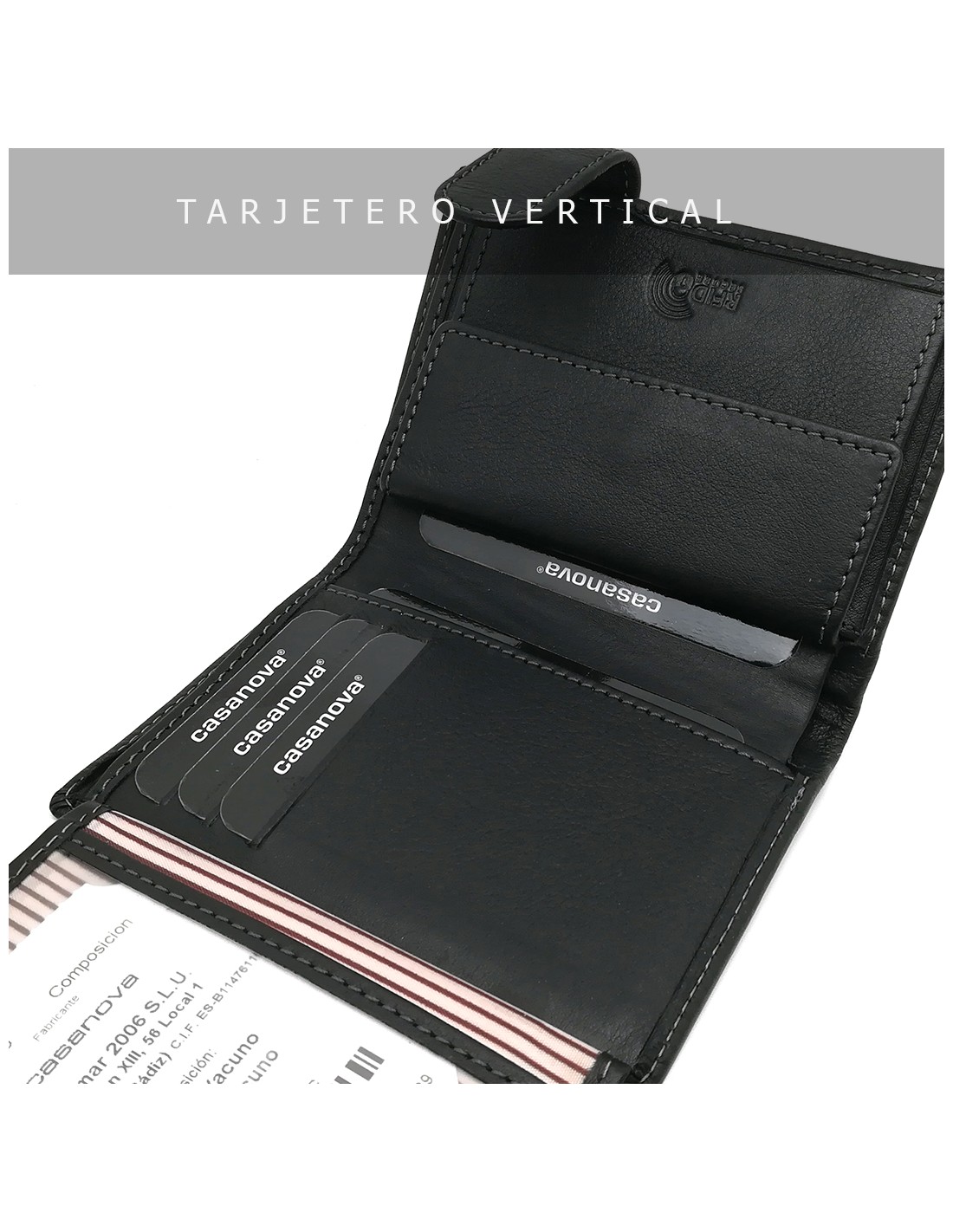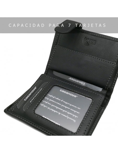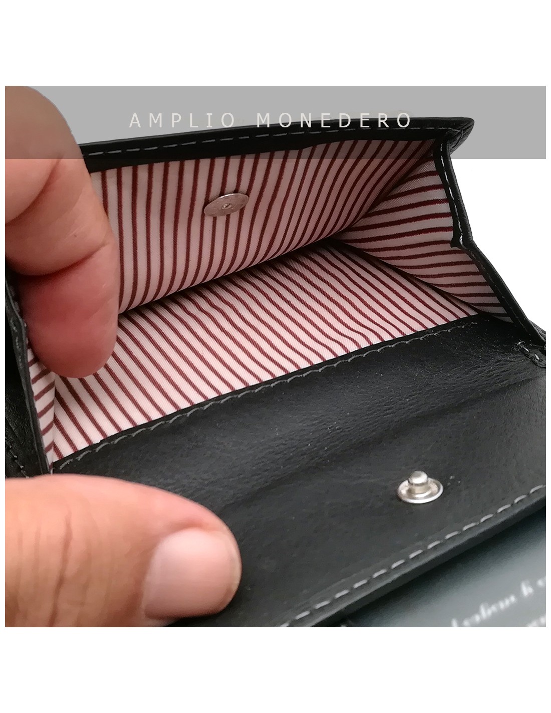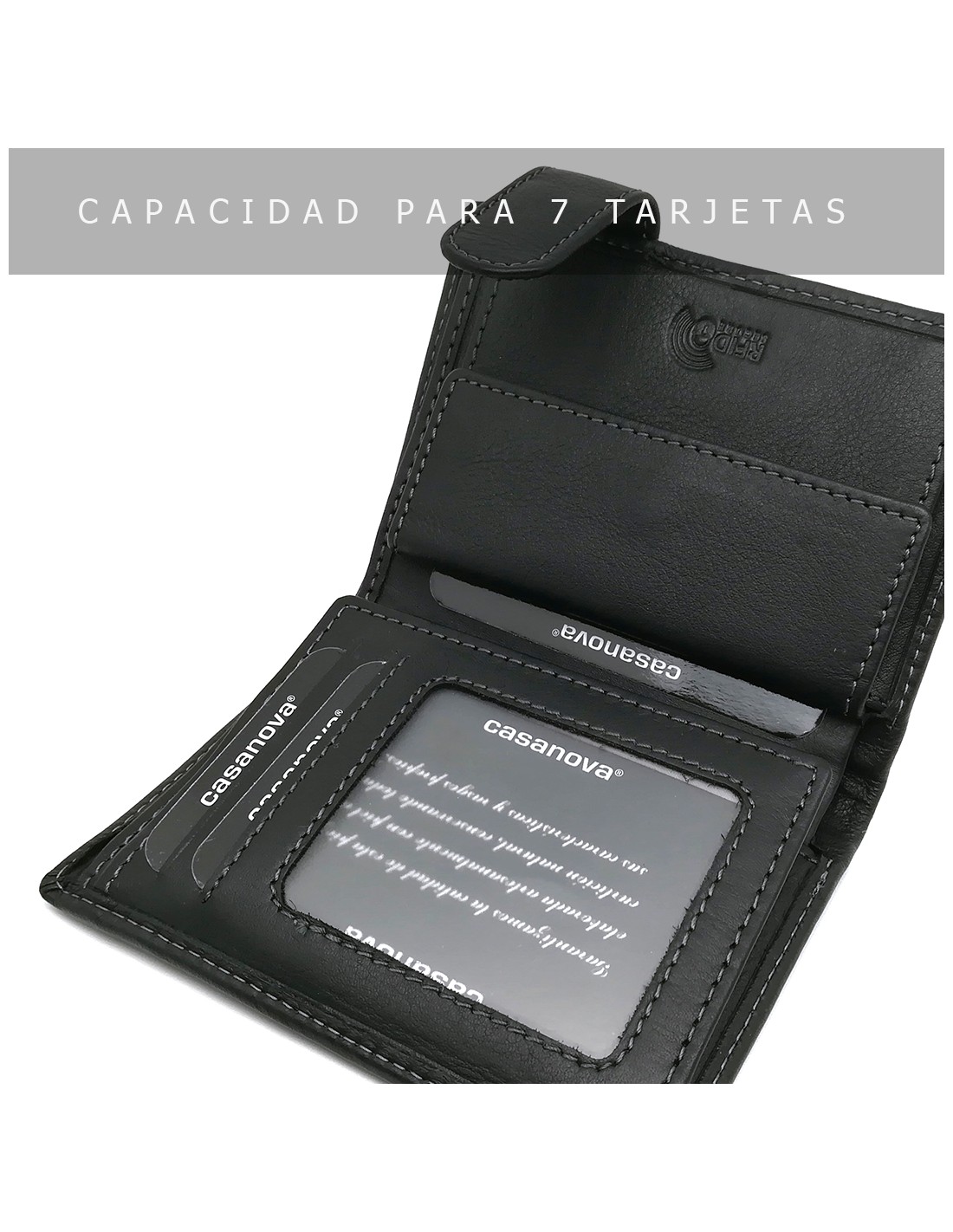Amplio almacenamiento y organización: En su interior, la Cartera CLASSIC ofrece múltiples ranuras para tarjetas, un compartimento transparente para documentos de identidad y dos espaciosos compartimentos para billetes. Todo pensado para que organices tus elementos esenciales con facilidad y eficacia.