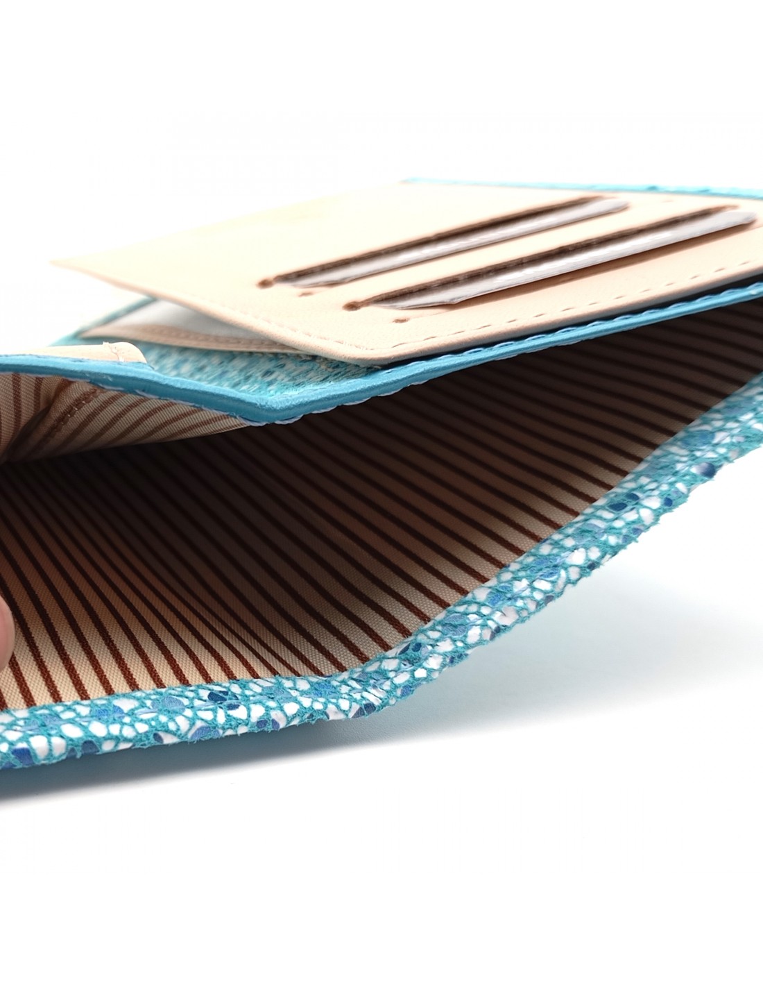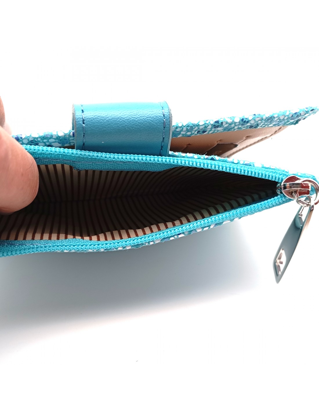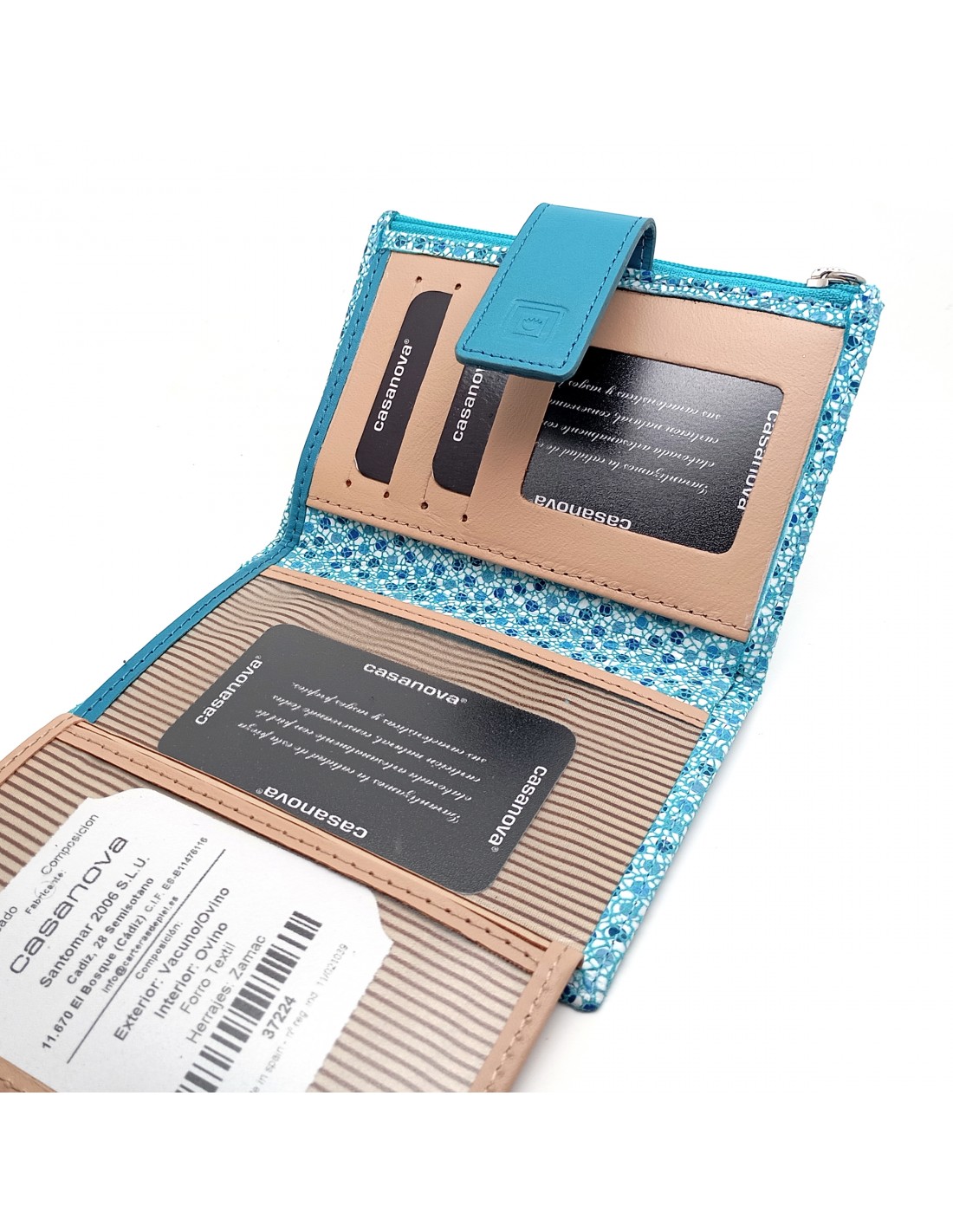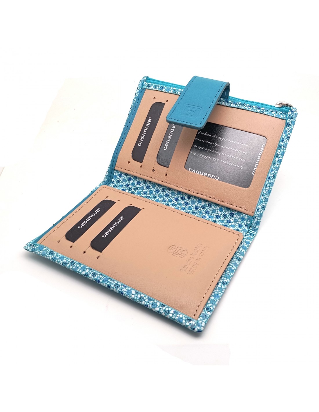 Monedero Billetera en Piel Para Mujer con cremallera,  Tamaño Mediano, MELISA azul parte interna