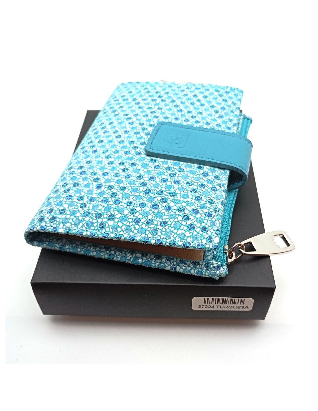 Disponible en vibrantes colores turquesa y rojo, este monedero añade un toque de personalidad a tu estilo. Además, el monedero mujer mediano viene presentado con etiquetado y caja, listo para regalar o para darte ese detalle especial que mereces.