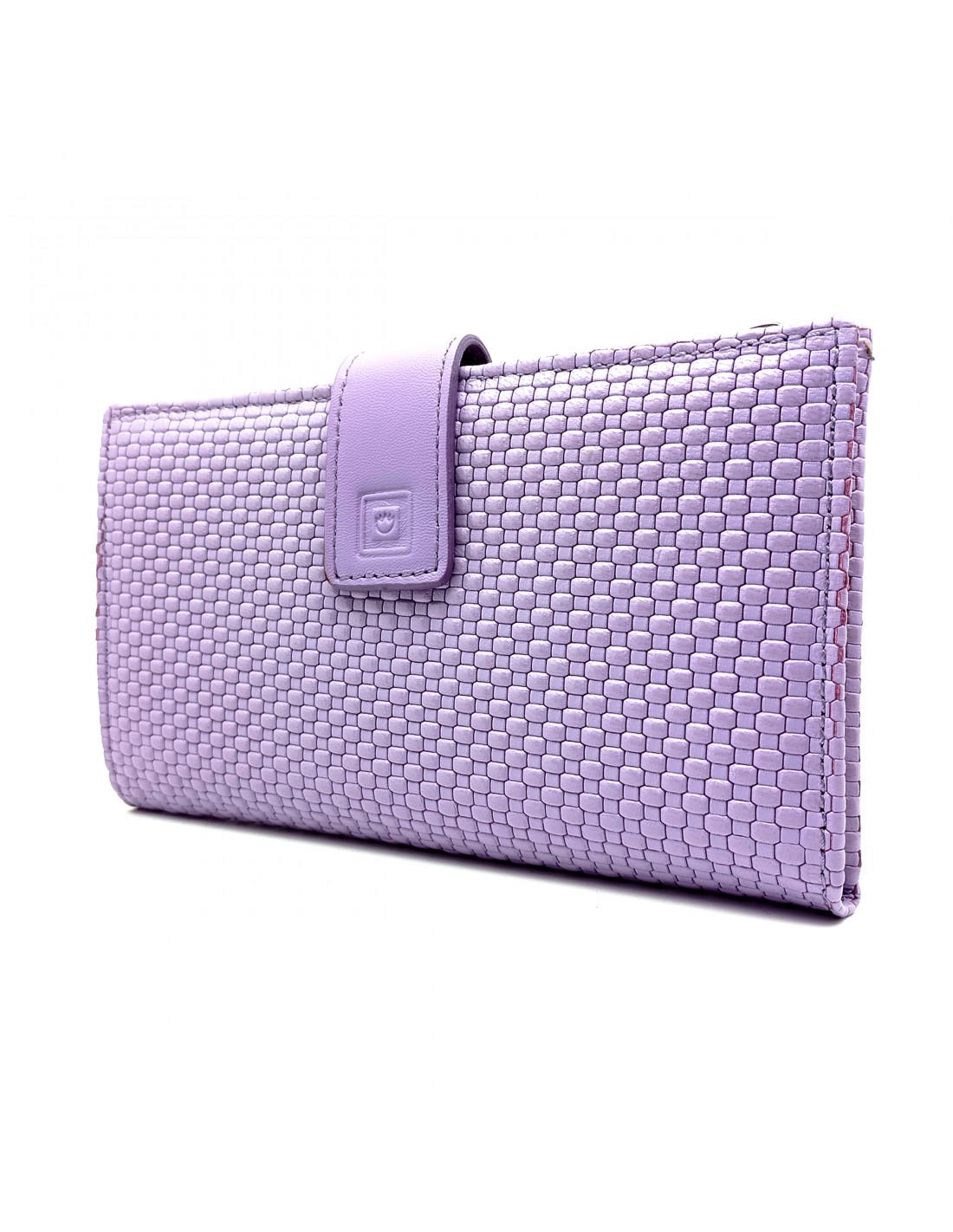 Monedero billetero de piel para mujer grande NEXUS lila parte externa.