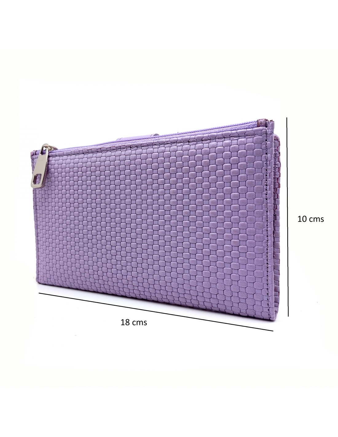 Monedero billetero de piel para mujer grande NEXUS lila medidas
