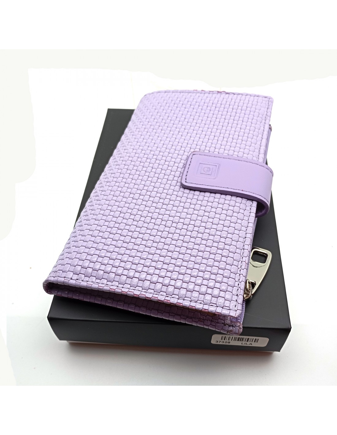 Monedero billetero de piel para mujer grande NEXUS lila con caja.