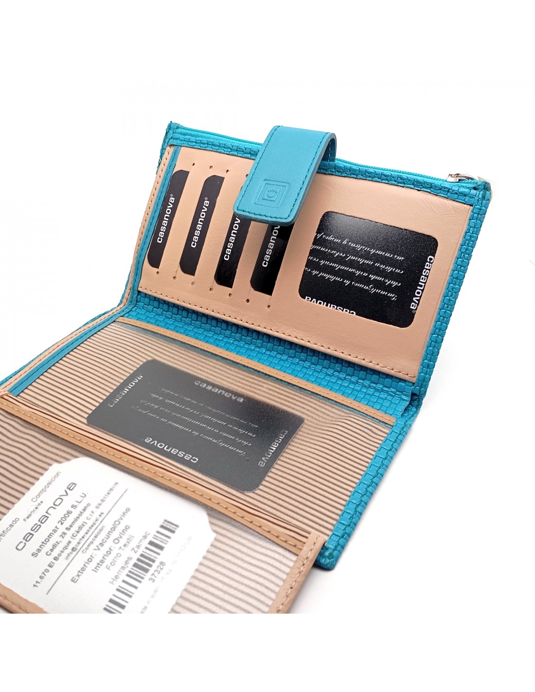 Monedero billetero de piel para mujer grande NEXUS turquesa  con caja.