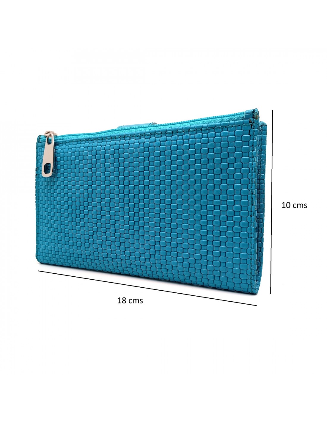Monedero billetero de piel para mujer grande NEXUS turquesa medidas.