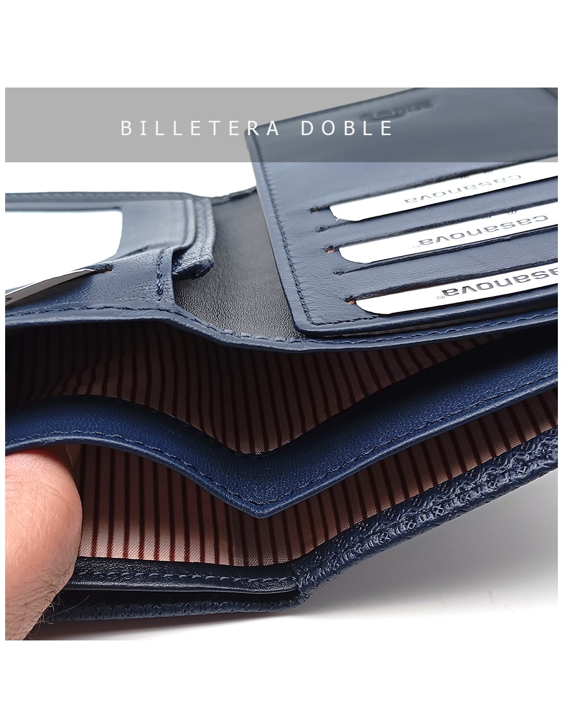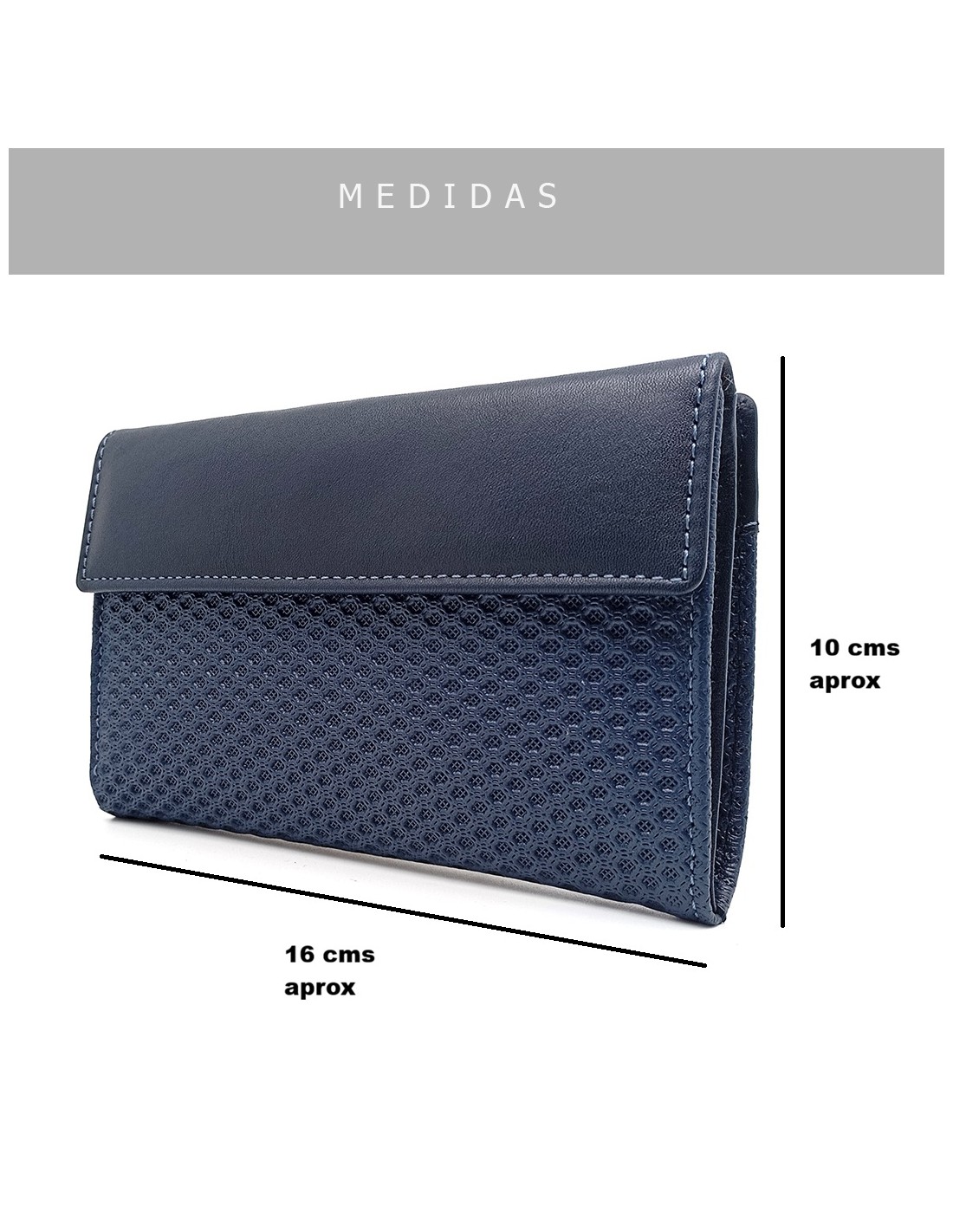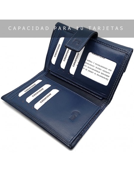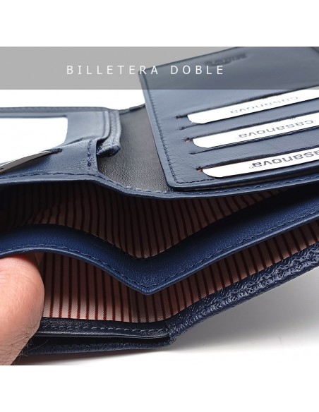 Cuenta con doble departamento para billetes, ideal para mantener tu dinero perfectamente ordenado, y capacidad para 10 tarjetas para que no tengas que dejar nada en casa. Además, su diseño de 16 x 10 cm lo convierte en un accesorio amplio pero cómodo de llevar.