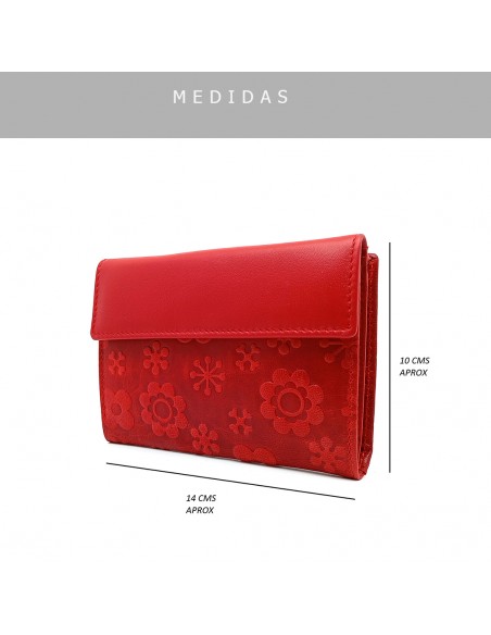 Monedero Billetera en Piel Para Mujer Tamaño Mediano, GR FLORES