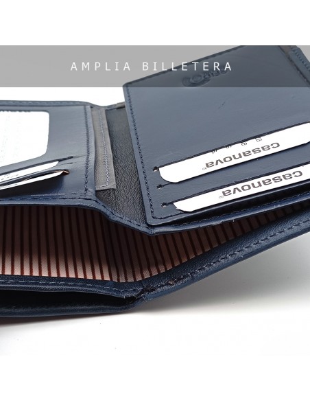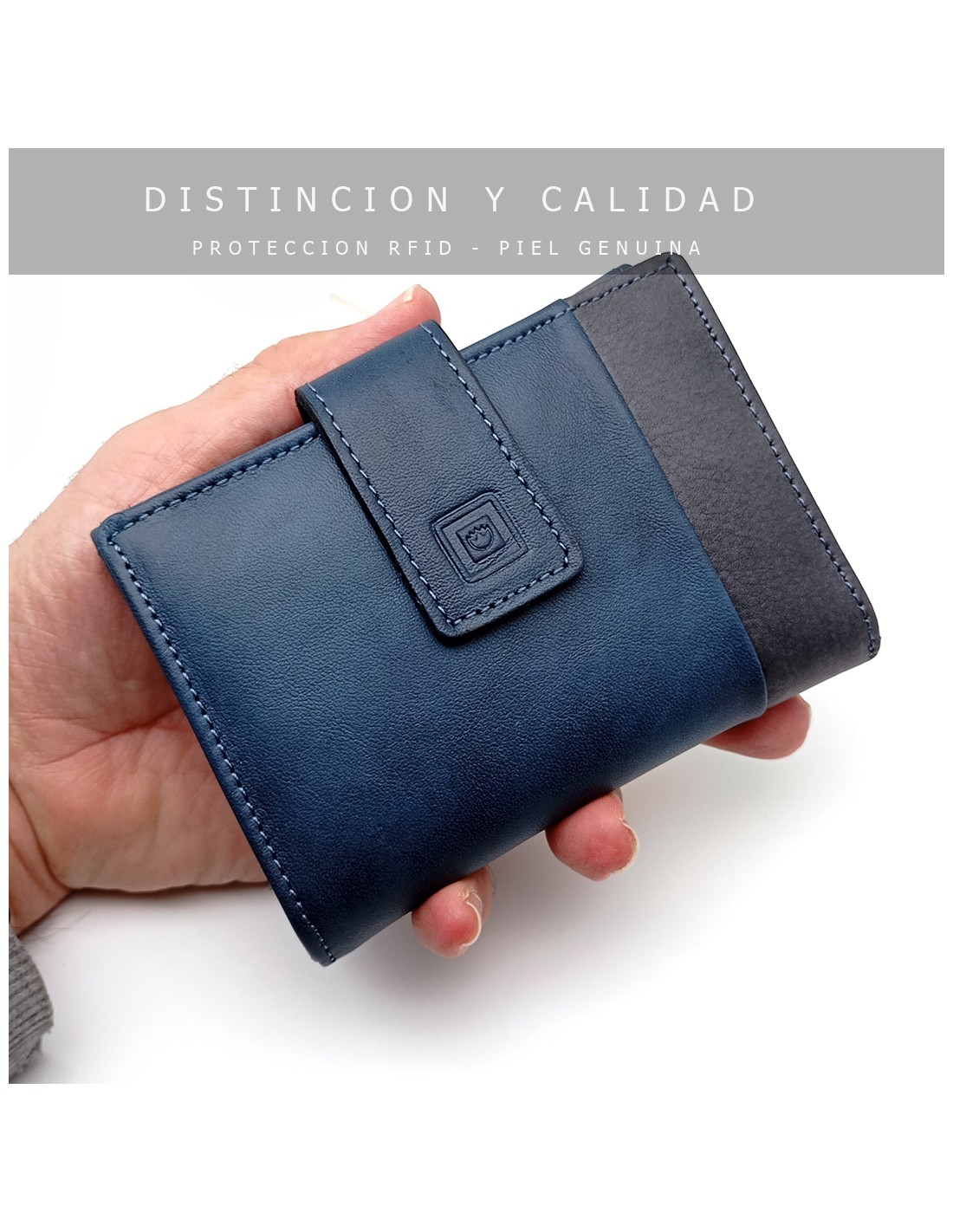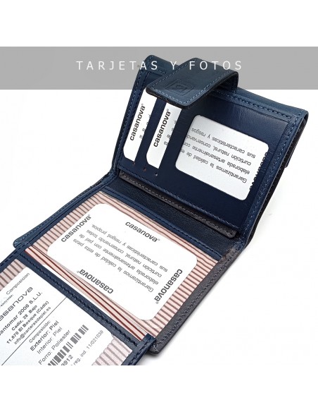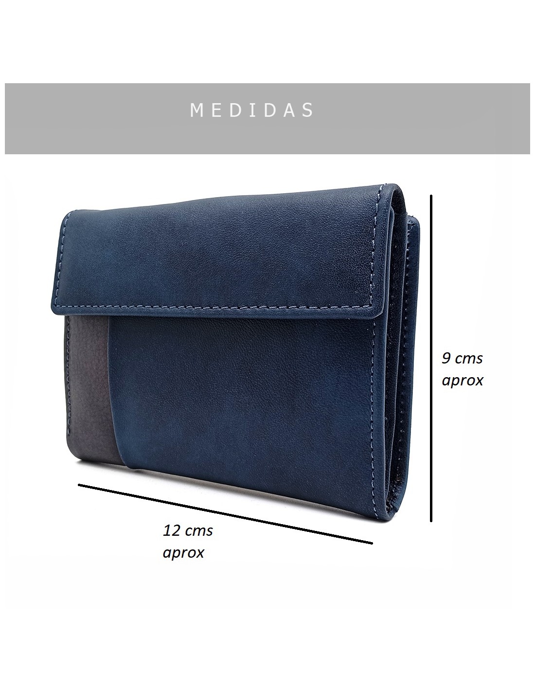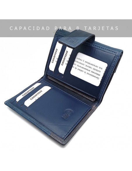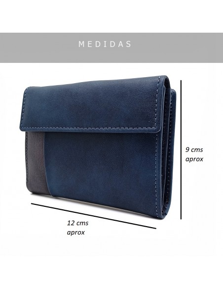 Monedero Billetero de Piel para Mujer Pequeño, BILBAO azul