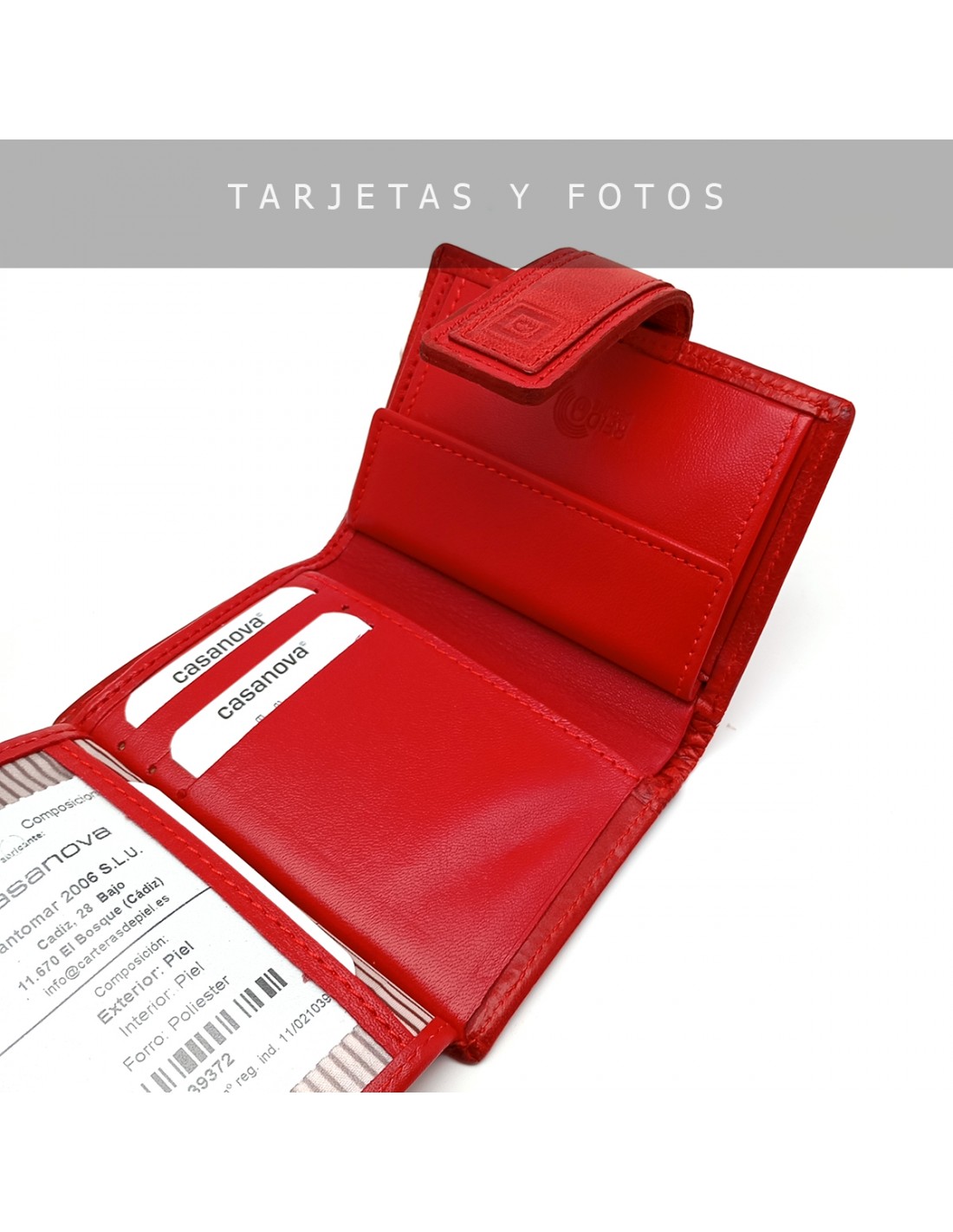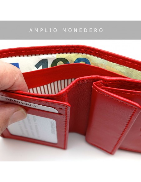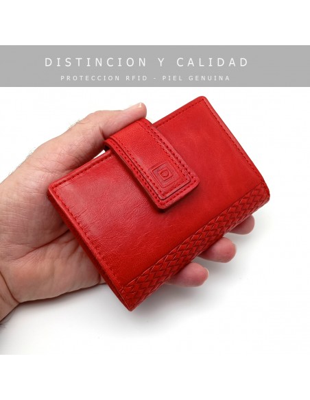 Cartera de piel para Mujer Pequeña con Monedero interior, TOLEDO rojo