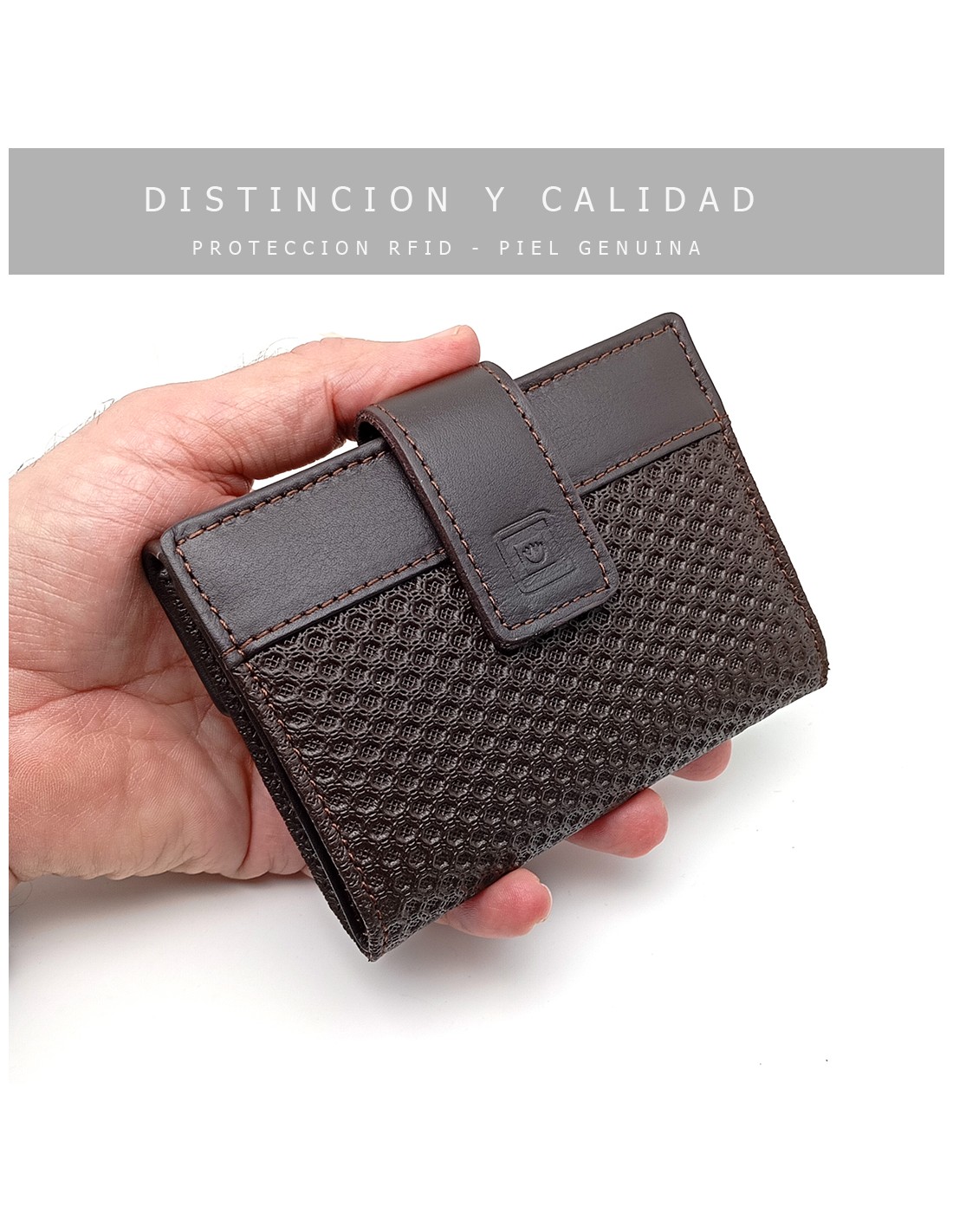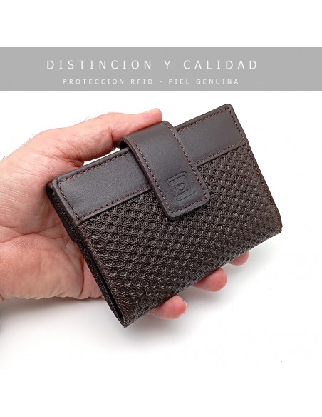 Monedero Billetero de Piel para Mujer Pequeño, HUELVA marron