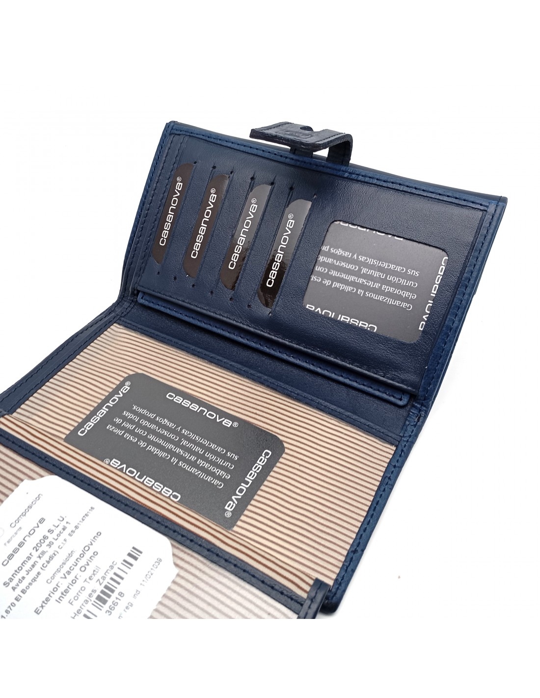 Si buscas una billetera que combine estilo, funcionalidad y seguridad, este monedero es justo lo que necesitas. Con un diseño sofisticado y práctico, está fabricado en piel de vacuno y ovino de alta calidad, tanto en su exterior como en su interior, lo que asegura una larga durabilidad y un tacto suave al contacto.
