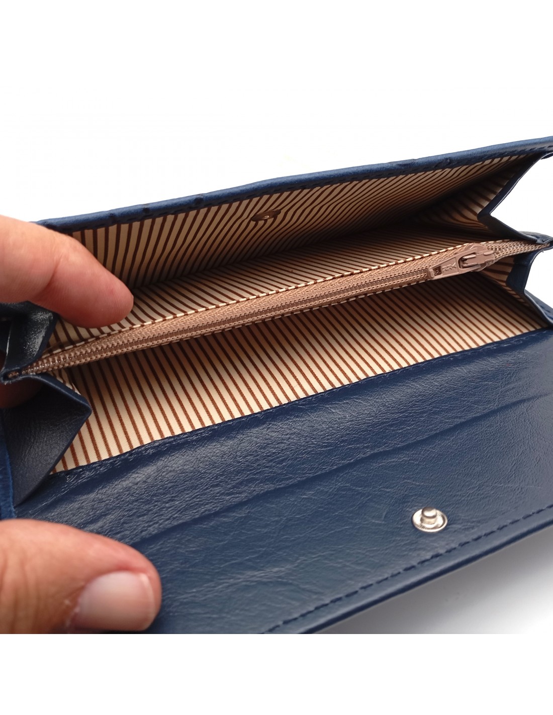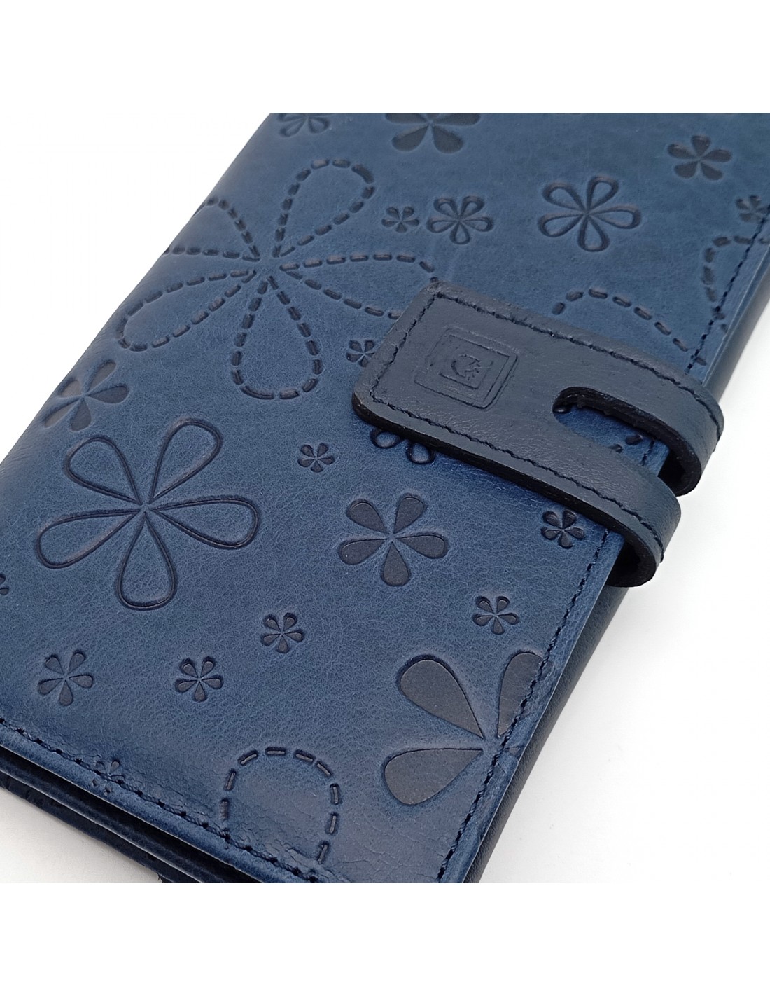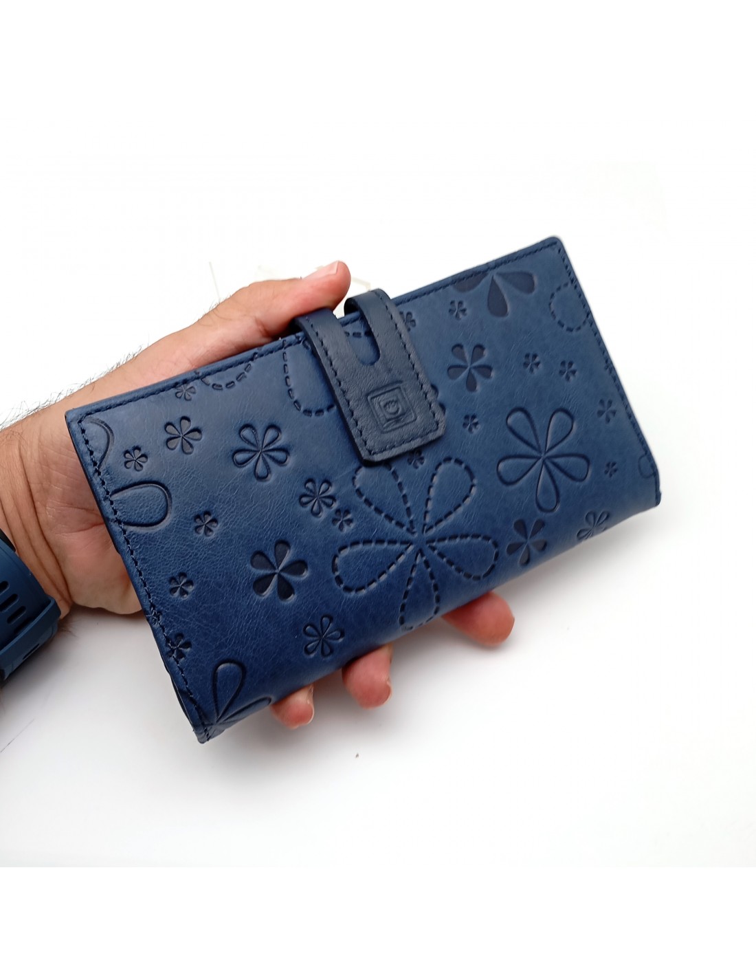 Monedero Billetera de Piel para Mujer Tamaño Grande, FLORES azul