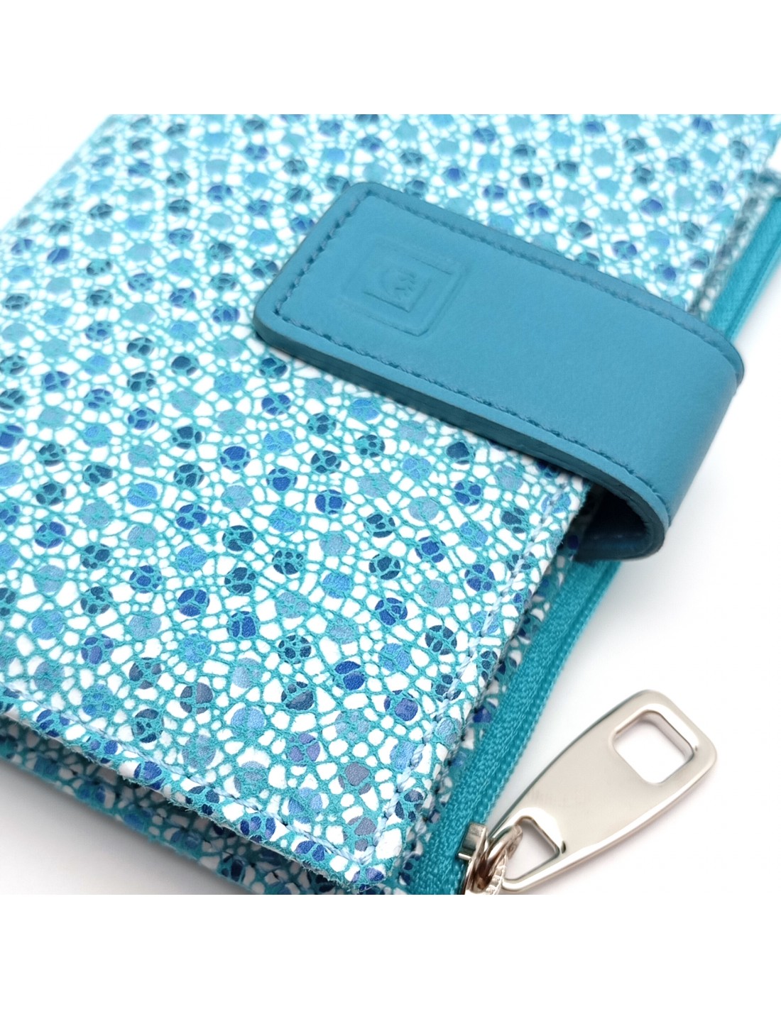 La cartera MELISA está elaborada en piel natural de ovino y vacuno, lo que le otorga un acabado suave y resistente. Disponible en rojo vibrante y turquesa, su exterior está diseñado para destacarse con un toque moderno, mientras que su interior forrado en textil asegura durabilidad y calidad.
