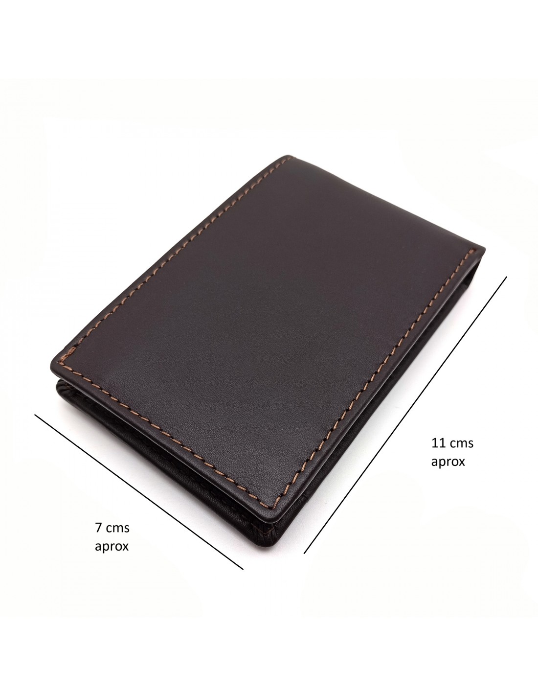 Su tamaño reducido, de aproximadamente 7 x 11 cm, es ideal para llevar en cualquier bolsillo sin perder comodidad. A pesar de su tamaño compacto, cuenta con capacidad para cuatro tarjetas, un práctico monedero integrado para tus monedas y un departamento para billetes doblados que mantiene todo bien organizado y al alcance.