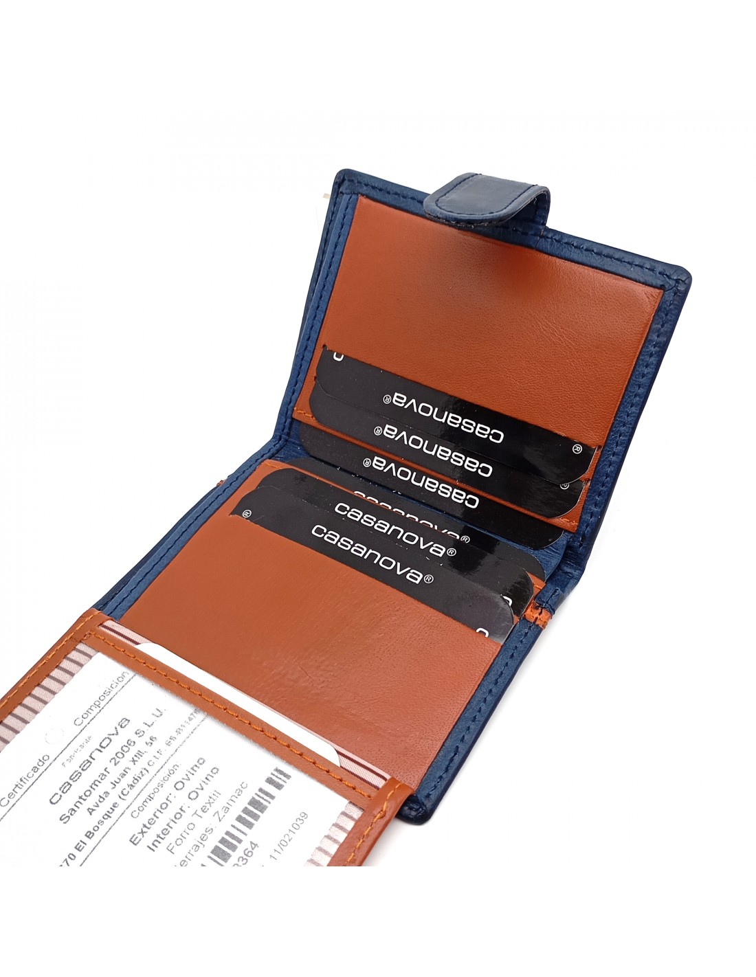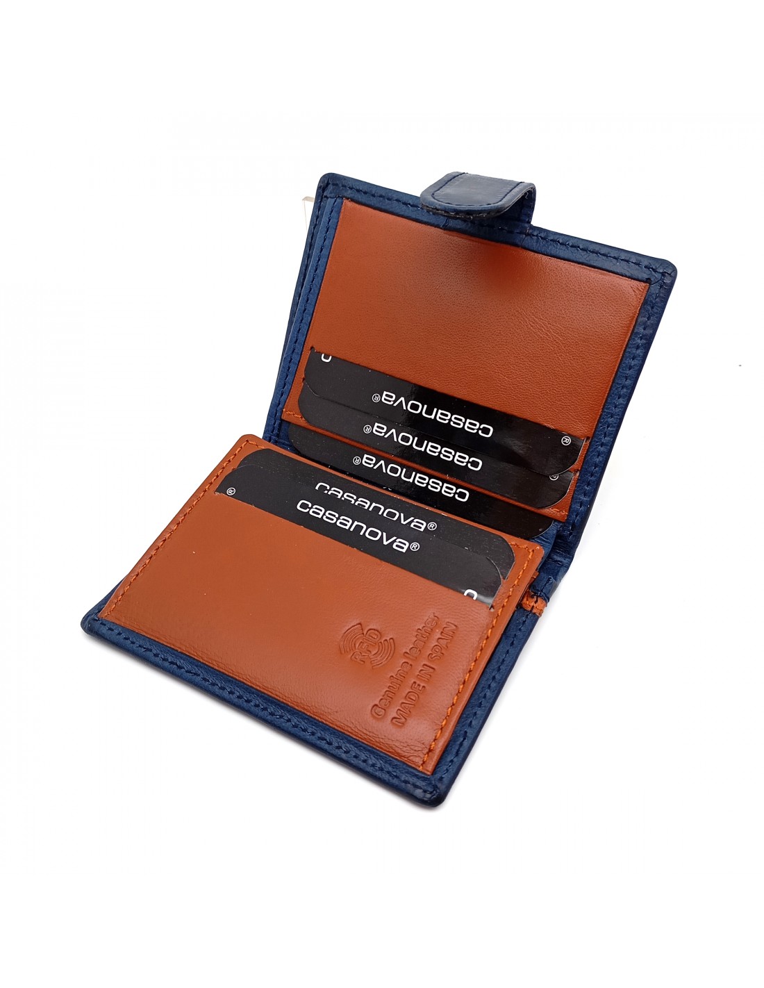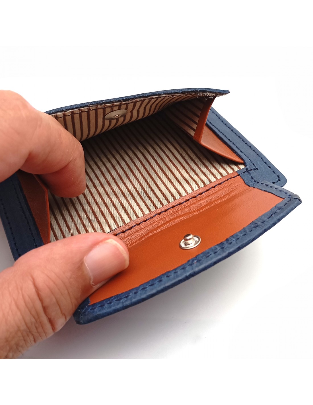 Cartera con monedero exterior piel para hombre TORONTO azul parte interna