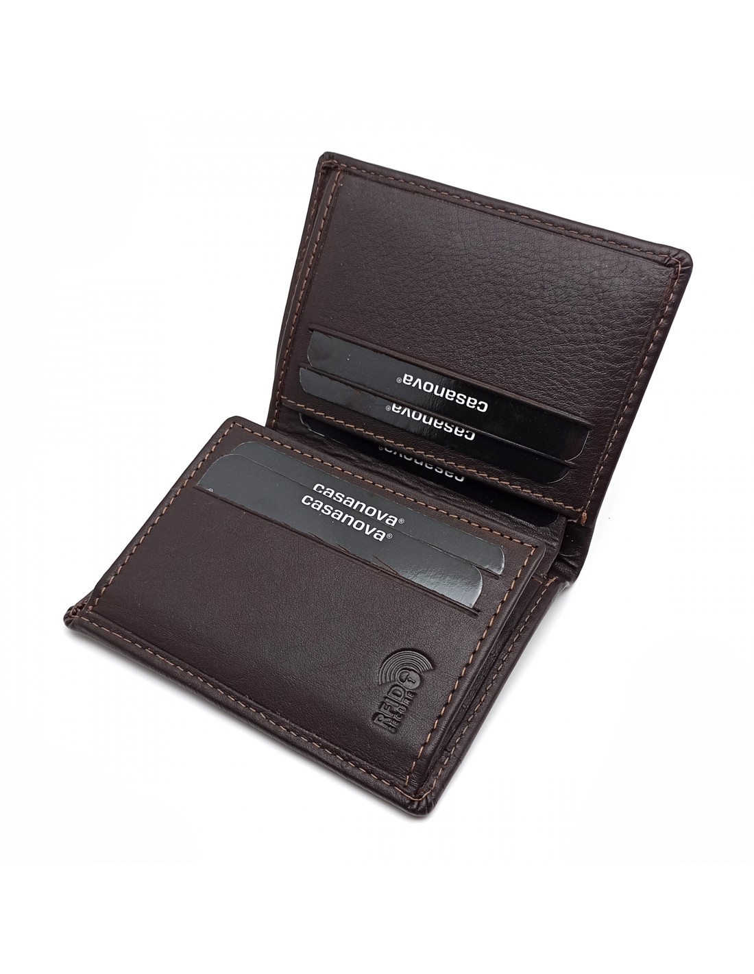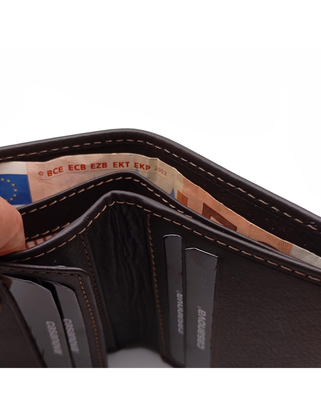 Mini/Cartera tarjetero de piel para hombre COSTURA marron compartimiento en billetes