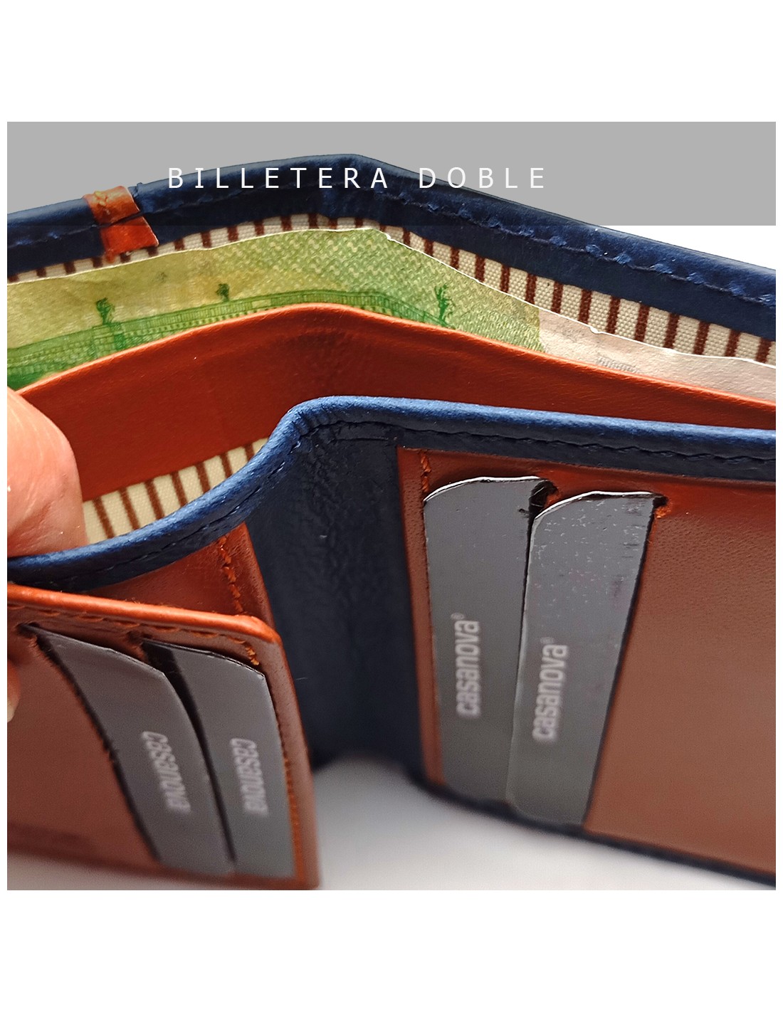 Doble compartimento para billetes: permite organizar dos tipos de billetes o separar un recibo del dinero en efectivo, todo a mano de forma rápida y cómoda.