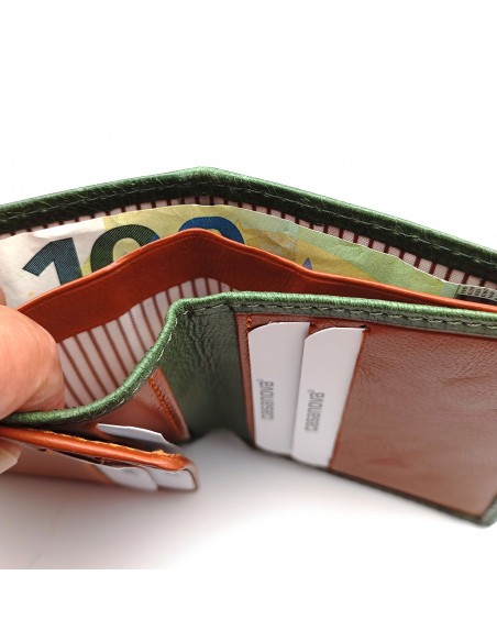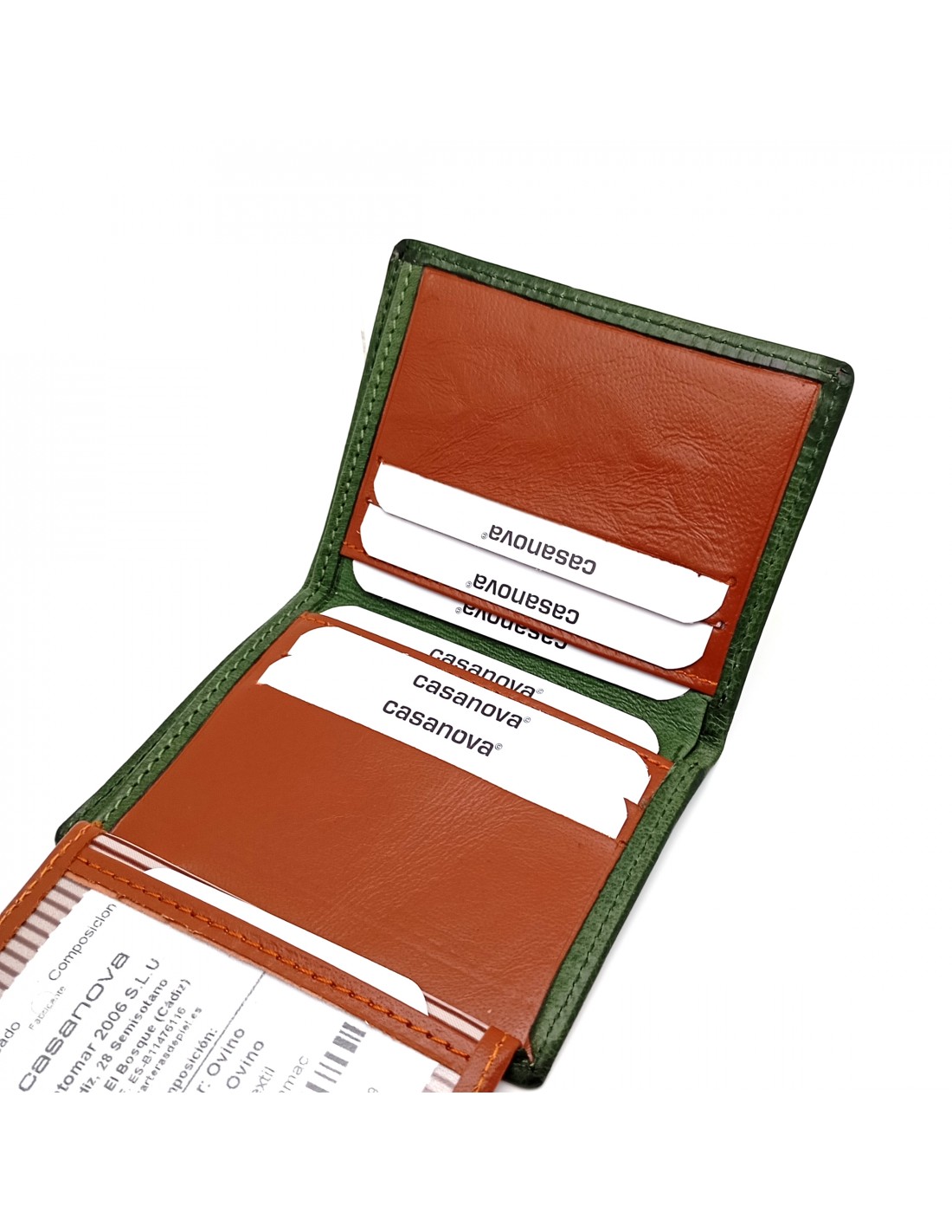 Mini/Cartera tarjetero de piel para hombre CALIFORNIA verde